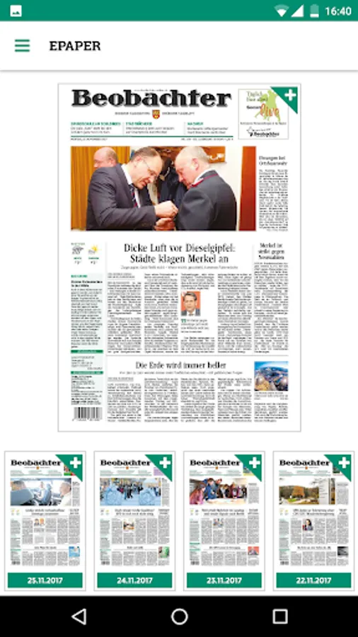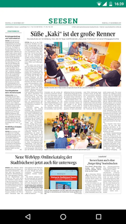 Observer Digital is the Seesener Observer app - your informative companion for everyday life. Don't miss any more news and stay up to date! With the ePaper, the app provides you with undisturbed reading pleasure even with an enlarged view of the current daily newspaper thanks to its optimized resolution.