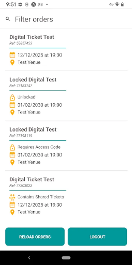 This app is for storing DIGITAL tickets only, it will NOT show e-ticket PDFs or other orders.