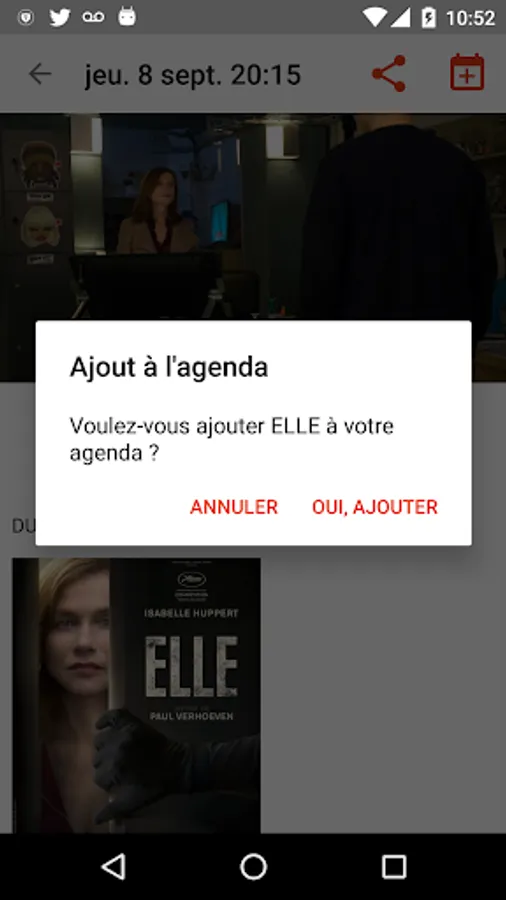 An upcoming movie please? Add it in a click to your iCloud calendar not to miss it, and pass the information to your friends by the media of your choice (mail, SMS, social networks ...)
