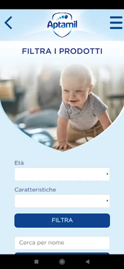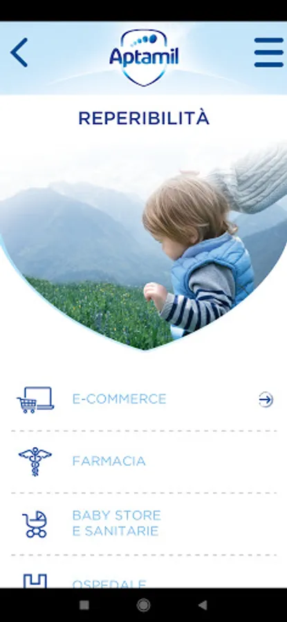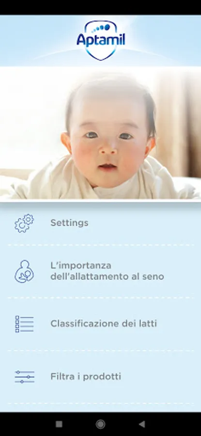 The Aptamil Milk Handbook application offers information on the complete range of Aptamil milks divided into chapters to facilitate the search for the desired product sheet.