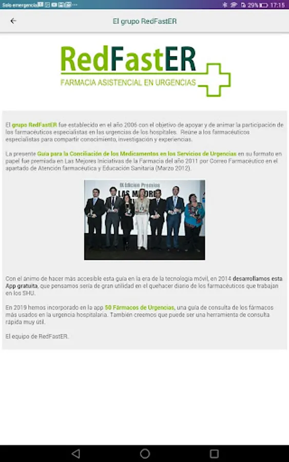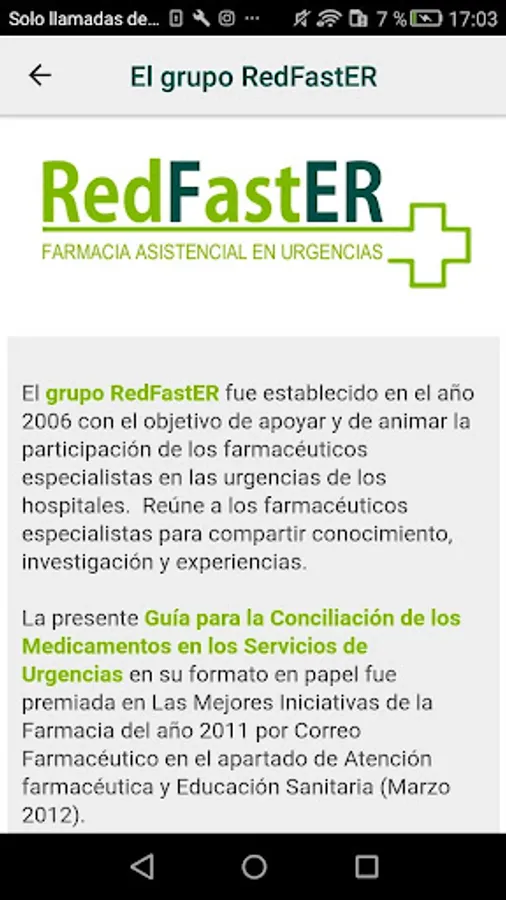 The RedFastER group of the Spanish Society of Hospital Pharmacy (SEFH) has created the UrgRedFasterFH app to help pharmacists specialists working in the emergency services of hospitals.