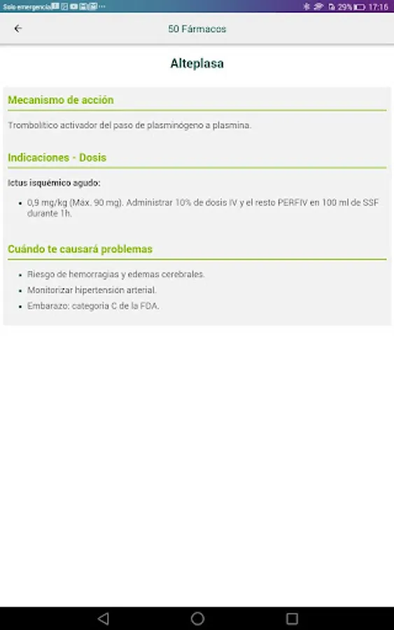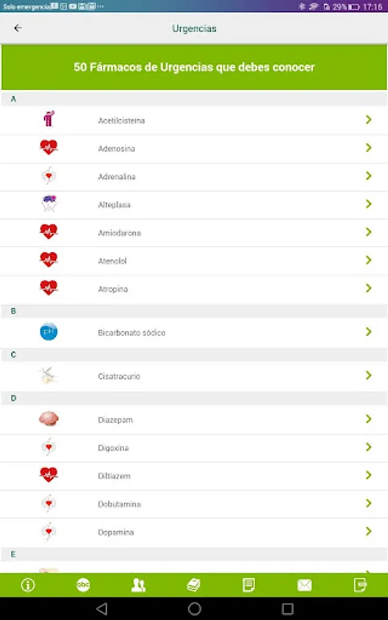 In July of 2019 we launched version 2.0 of the app, to which we have changed the name to UrgRedFasterFH. In addition to the conciliation guide, it includes "50 Drugs of Emergency," based on the work "50 Drugs every emergency should know" published by the American Academy of Emergency Medicine Resident and Student Association. It is a guide for consulting the most used drugs in the emergency department. The adaptation that the RedFastER group has made, intends to transmit the minimum information that needs to be known in order to be able to carry out a fast and efficient attention in the Emergency Services. Each of the 50 prescription cards has 3 sections: