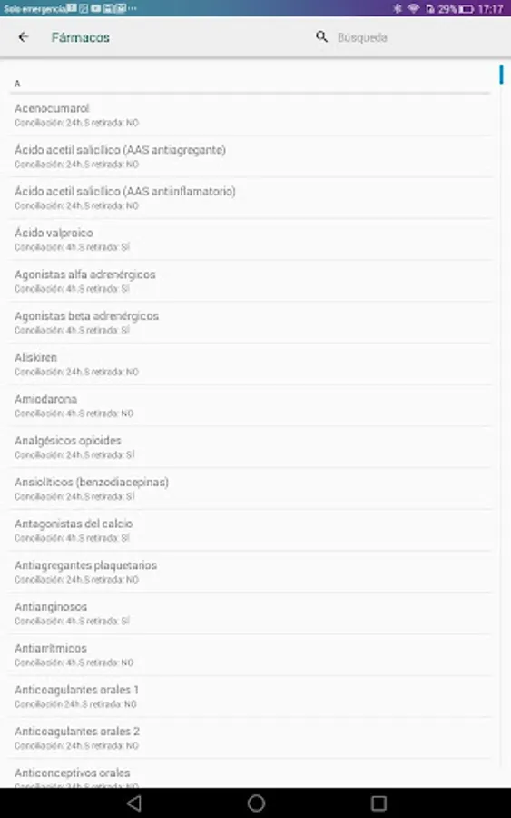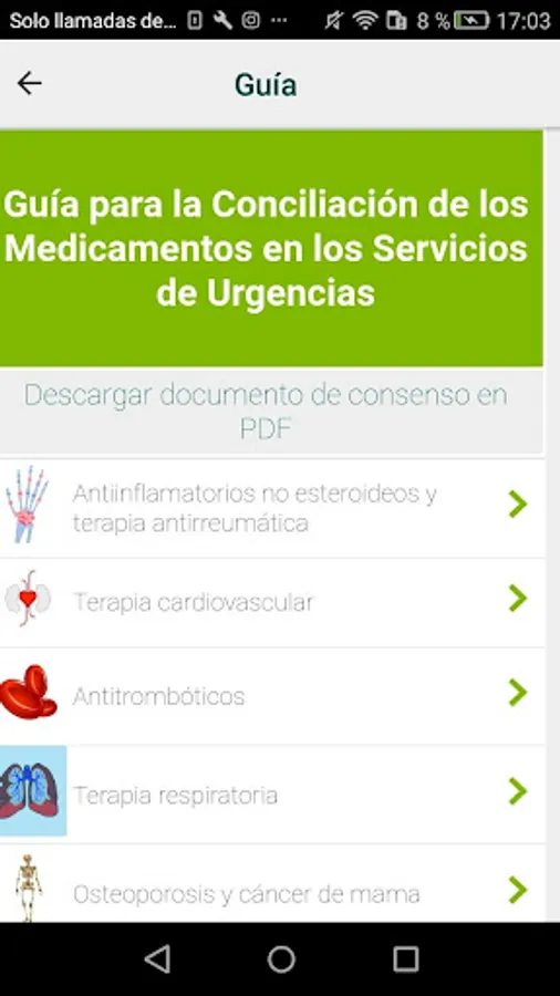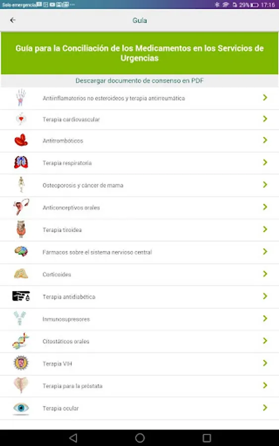 The "Guide for the Reconciliation of Medicines in Emergency Services" of the RedfastER group includes medicines or groups of medicines ordered by pathologies. For each of them, the following has been taken into account: