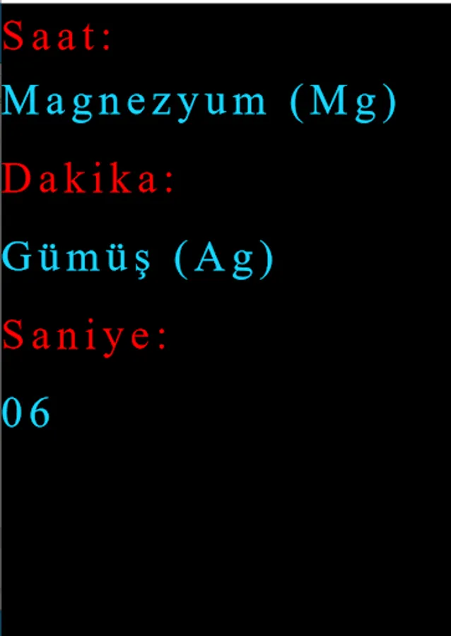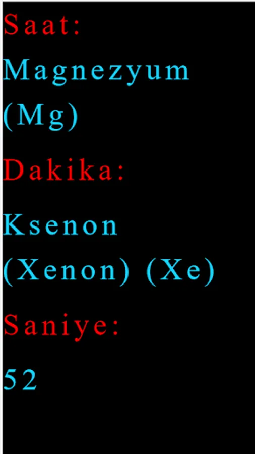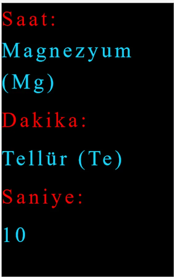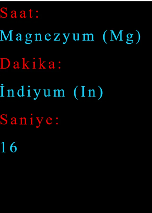 The representation of hours using the atomic number of the elements. Finding the minute and hour by finding the atomic numbers of the elements shown on the screen.