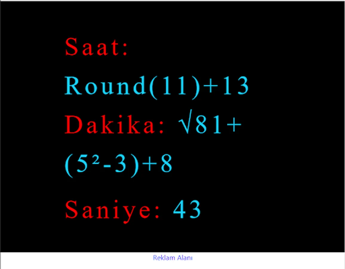 Creating a clock with mathematical expressions and showing it on the screen. To ensure that users find out what time the transaction result is by doing these operations.