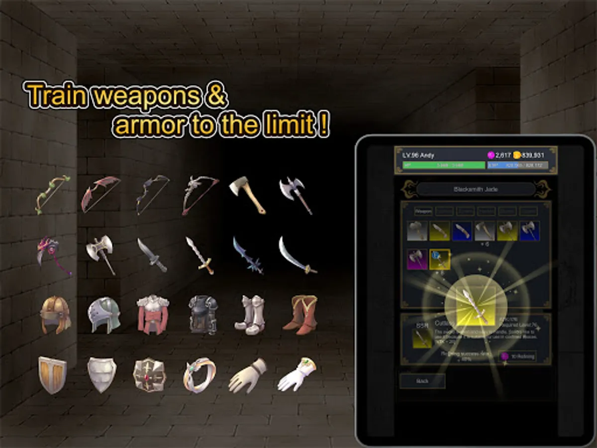 Weapons and armor can be refined at the blacksmith to increase their performance.