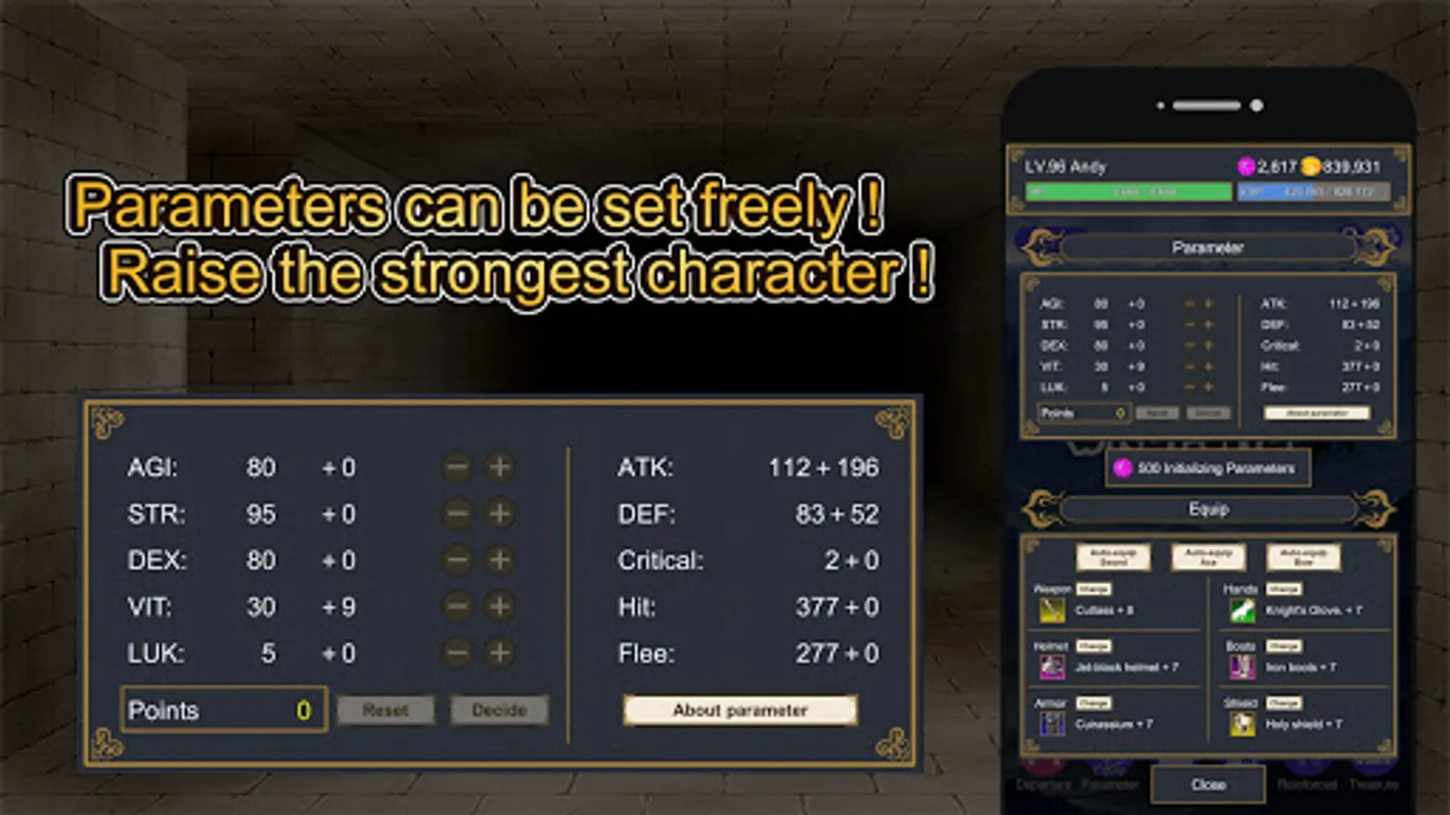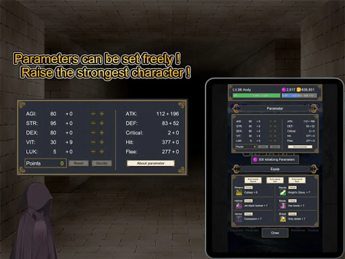 You can freely adjust the five parameters of AGI, STR, DEX, VIT, and LUK, so you can create a character of your choice.