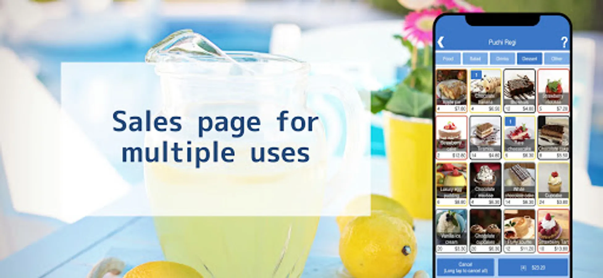 You can create a checkout sales screen by placing items in any position you want, so you can customize it to be easy to use, such as placing frequently sold items on top.