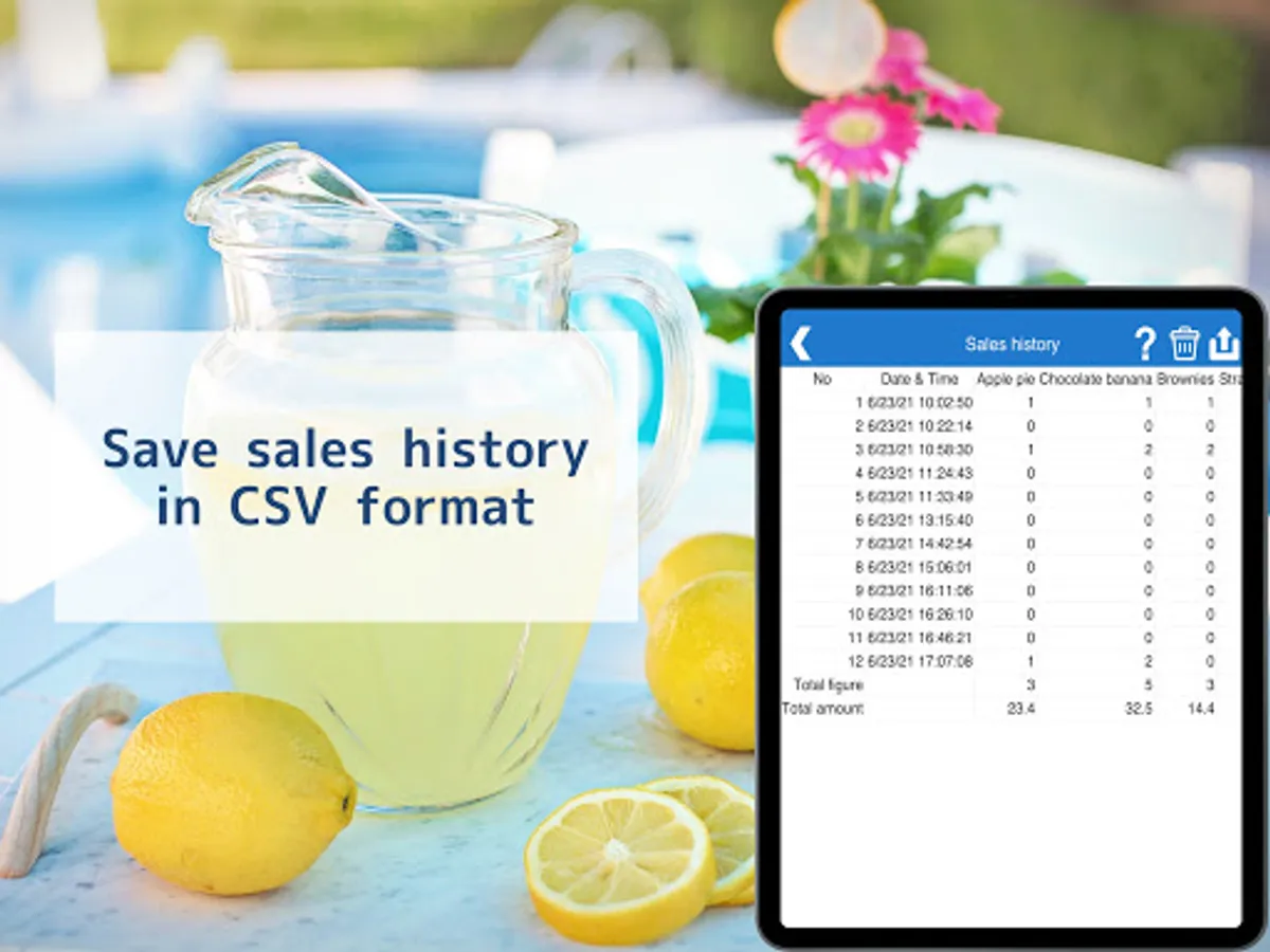 Sales history can be conveniently exported as a CSV file by day.