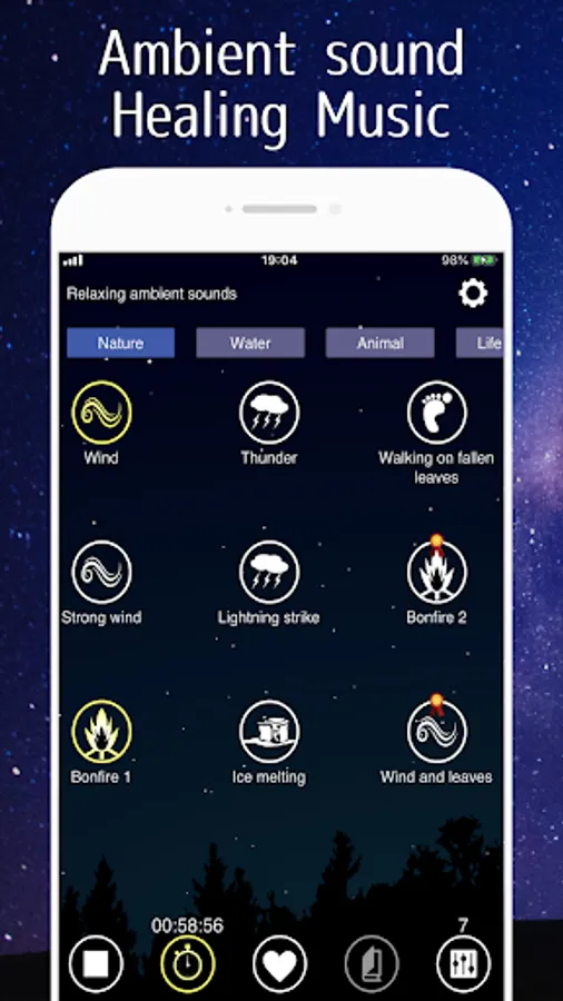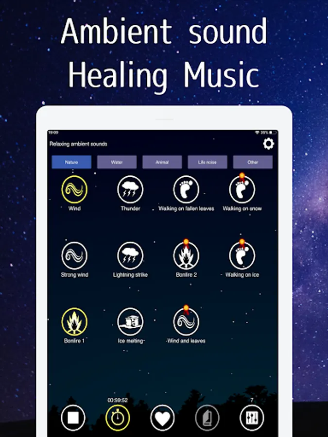 - High quality environmental sounds in five thematic areas: nature, water, animal, life, and other sounds