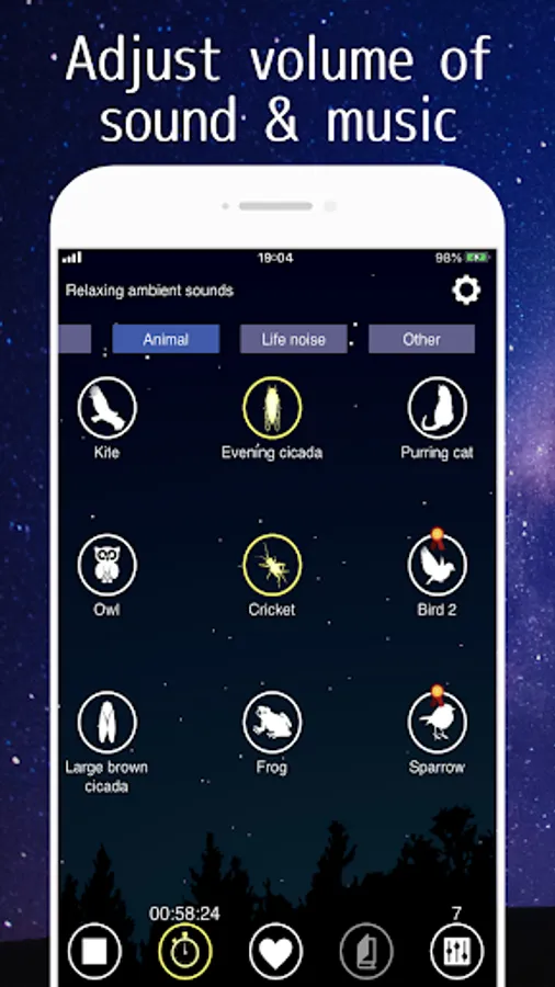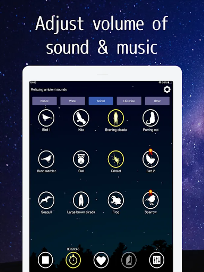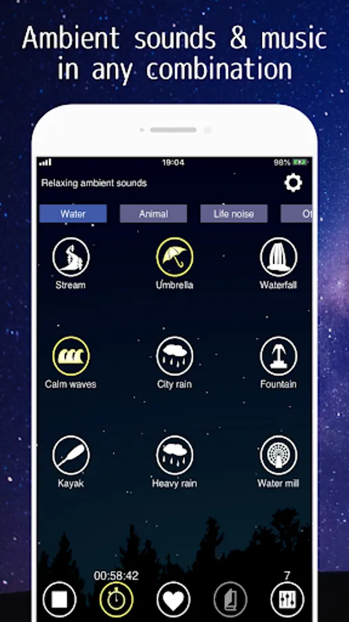 You can also adjust the volume of each one, so you can create the ideal environmental sound of your choice.