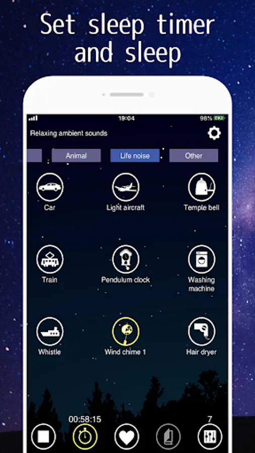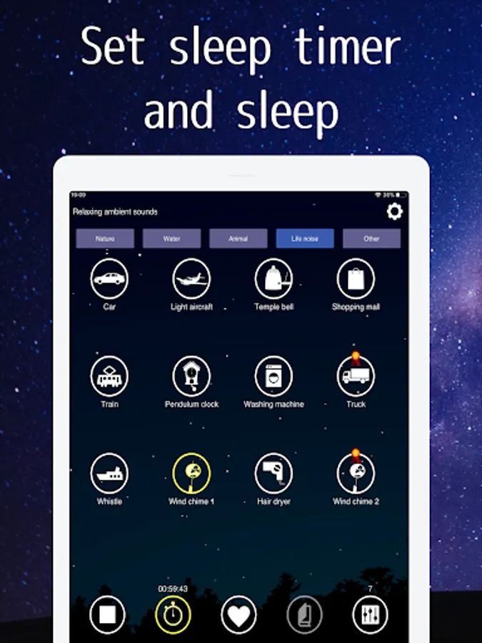 This app can be used for nature sounds such as the sound of rain and wind, as well as the sound of a car engine, wind chimes and washing machine. Many unique sounds are included.
