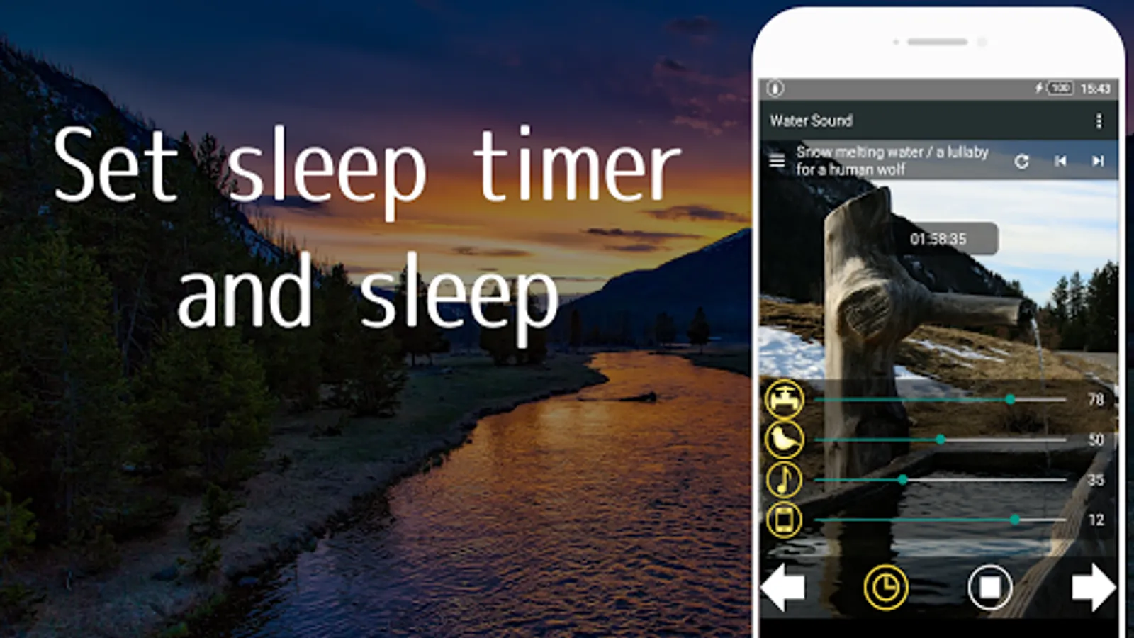This application can make you sleep by playing a pleasant sound of water and gentle music.