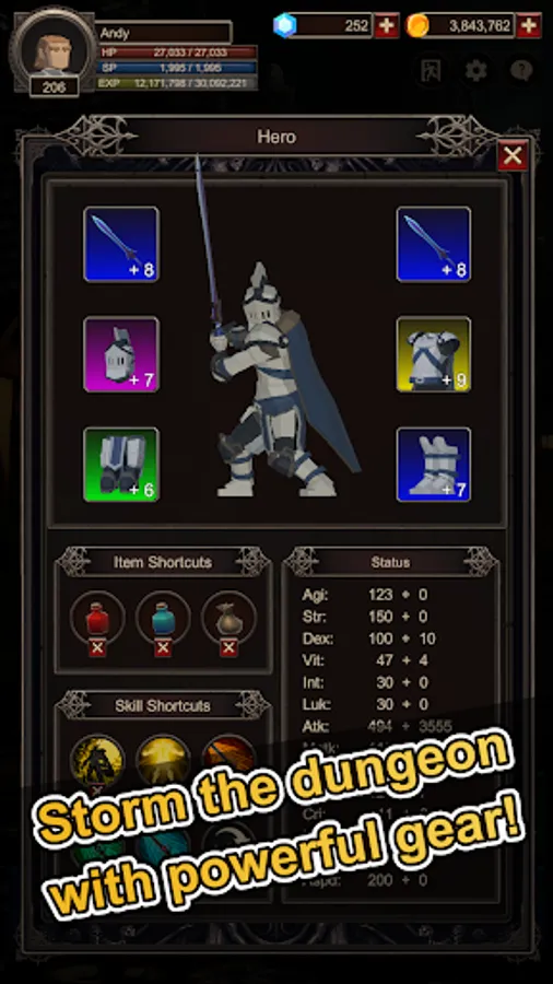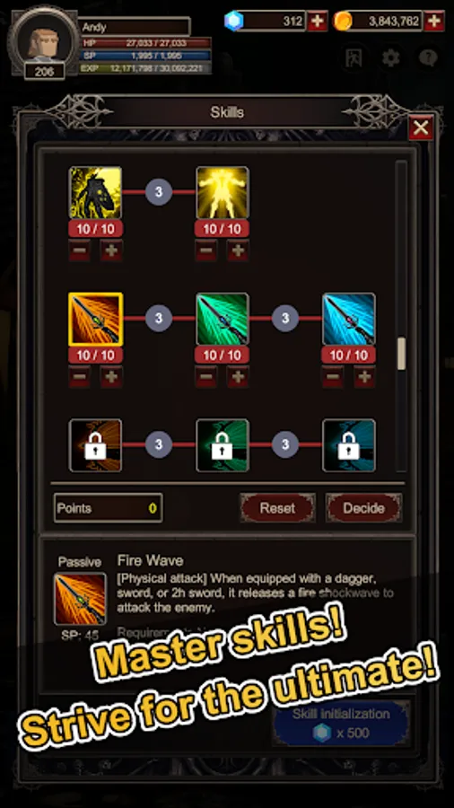 You can also reset your hero's status as many times as you like, so you can try and error until you create your ideal hero.