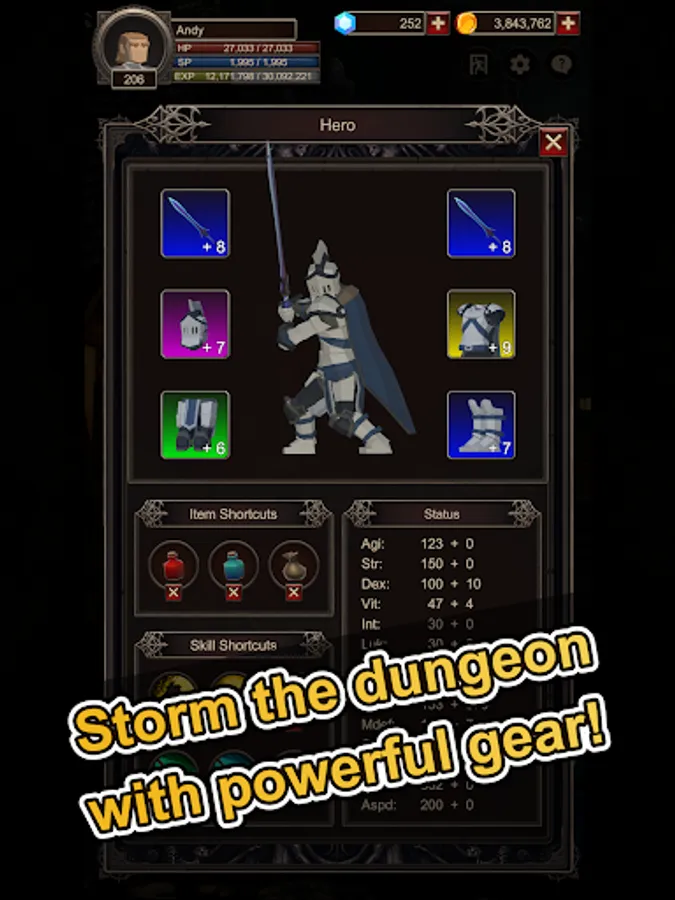 Enjoy the freedom to develop your hero by defeating monsters, strengthening equipment, learning skills, and more.
