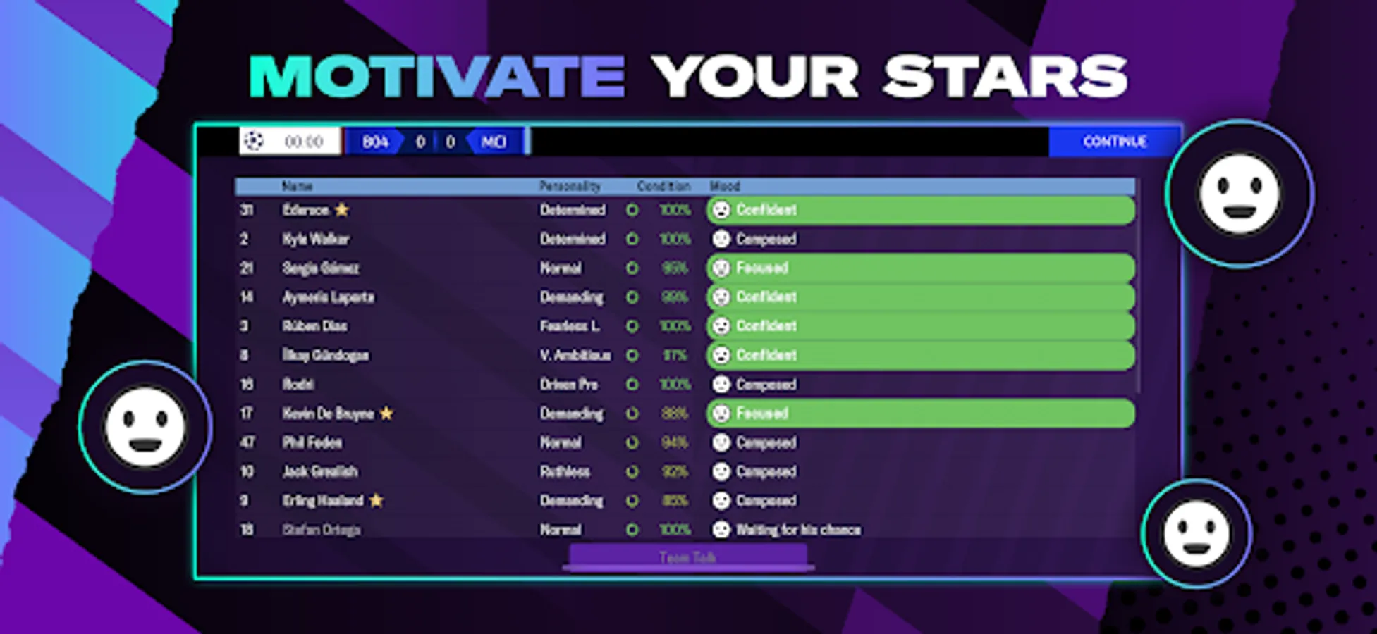 Build a squad full of superstars, develop your wonderkids into world-beaters and use Team Talks to inspire your players into action.