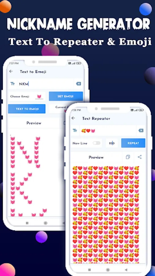 This app is an easy to use free name generator. Type in your custom name and automatically generate the nickname with different fonts, letters and symbols.