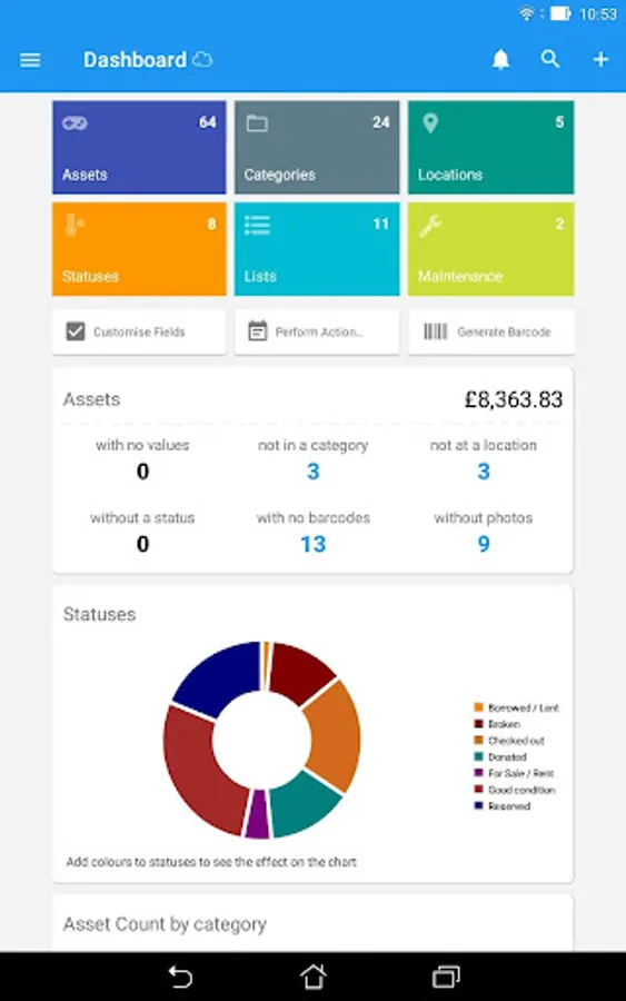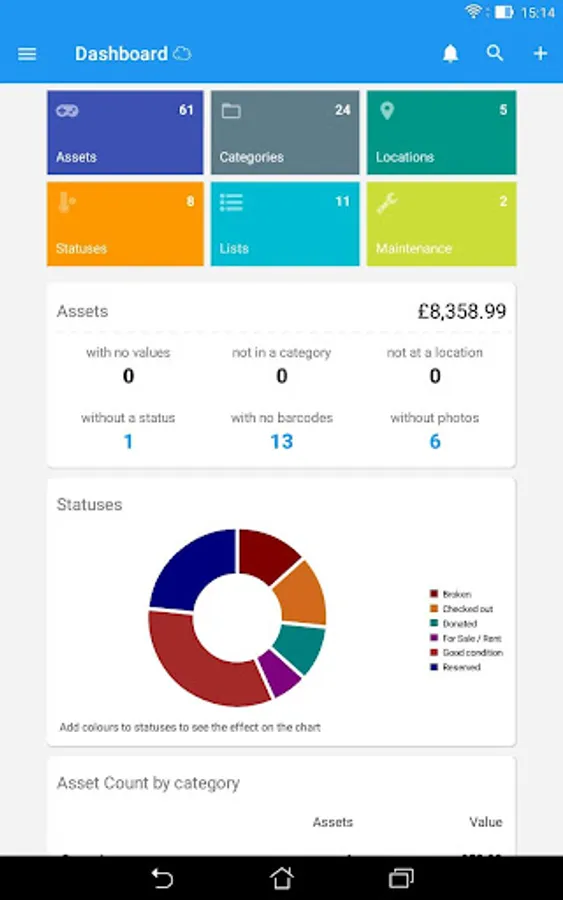 ✓ Assign your assets to your defined categories, locations, and statuses.