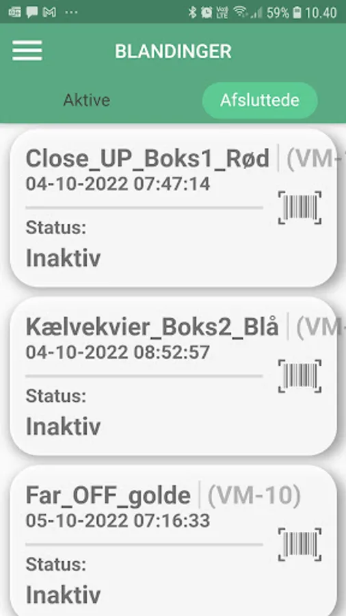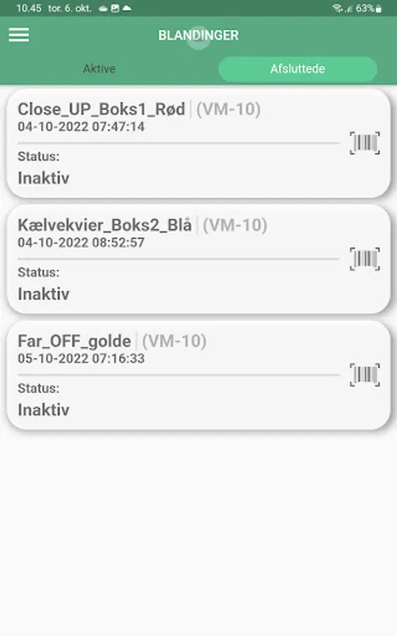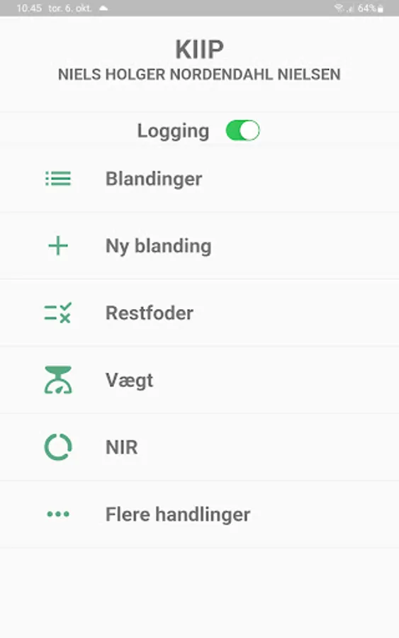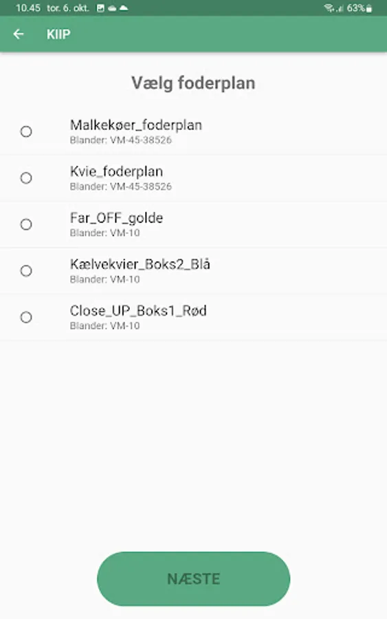 App for managing the weighing of feed materials for feed mixers, managing mixing time and feeding to feeding sections. Feed materials, prescriptions, feeding section and number of animals in feeding section are obtained from DMS.