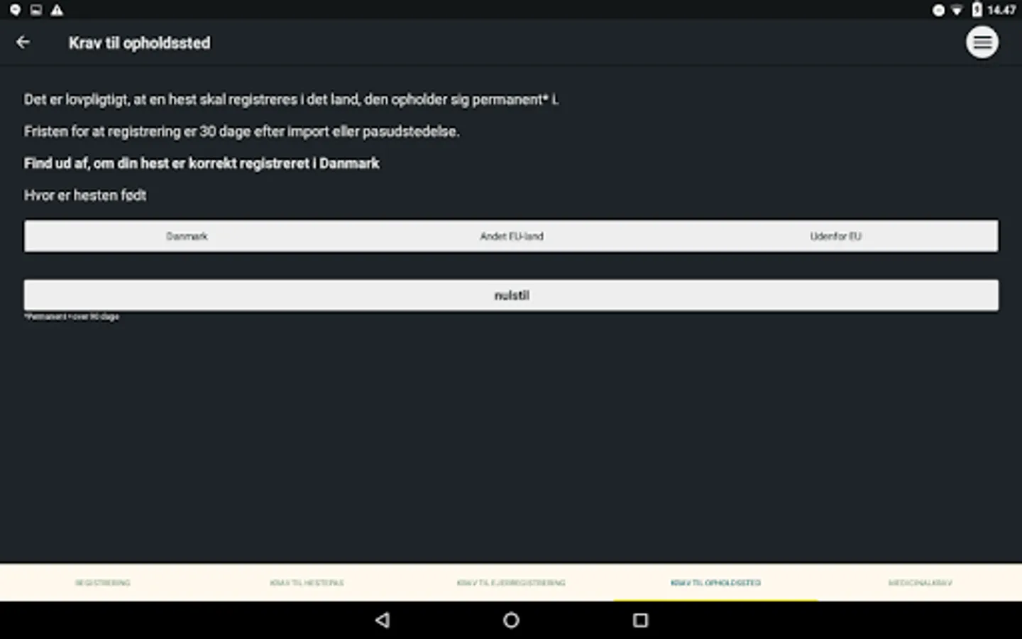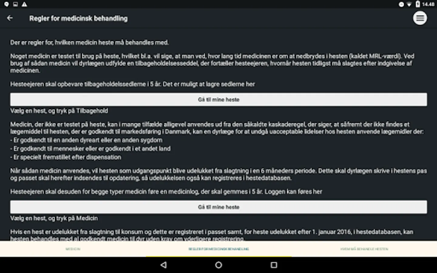 Get an overview of legislation regarding your horse team. Here you can find out whether your stables and folds comply with applicable legislation, whether you are covered by the provisions of the Transport Regulation and how you register your horses. You can also create the horses in your shed, fill in transport documents and store legal documentation for feeding and medication.