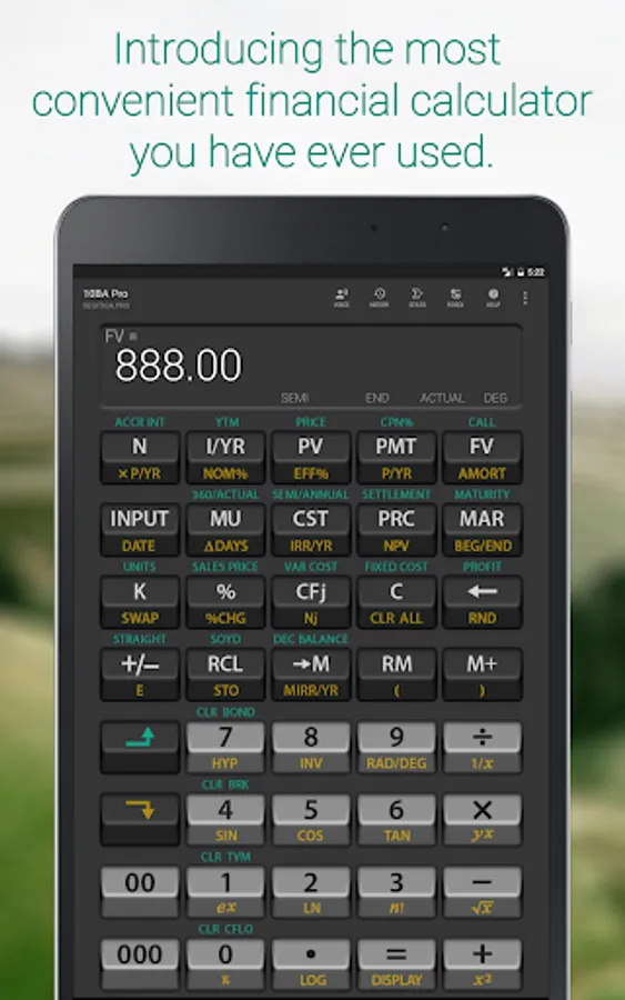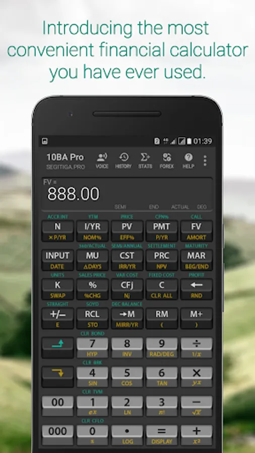 The 10BA Financial Calculator works like the industry standard financial calculator such as the HP 10B, HP 10BII, or the HP 10BII+ emulator; however, we add tons of unique features that makes this app be the most convenient financial calculator that you have ever used.