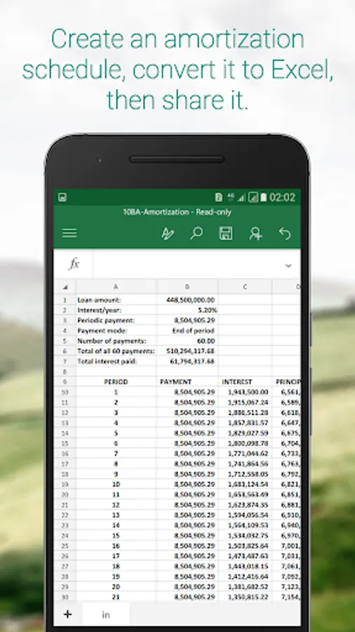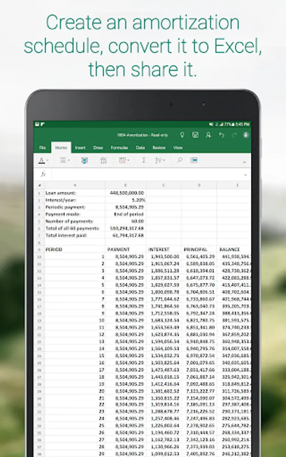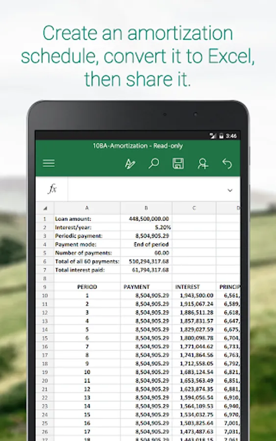 Produce an amortization schedule that you can convert into Excel format and later share with your contacts.