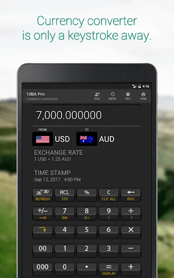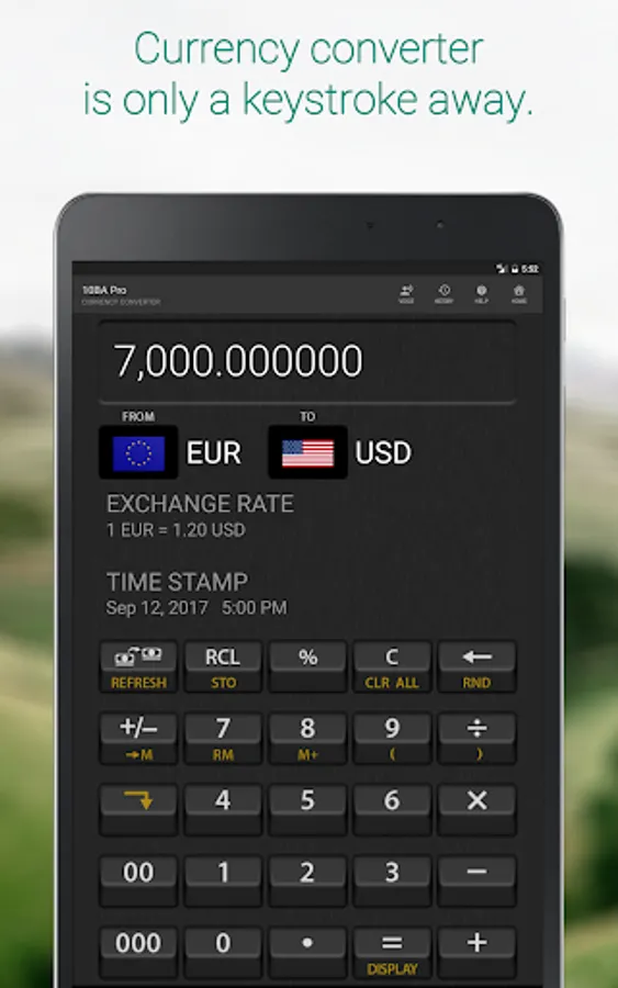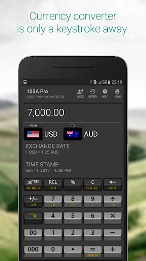 Currency converter is integrated into the calculator and is only a keystroke away.