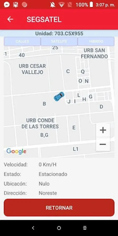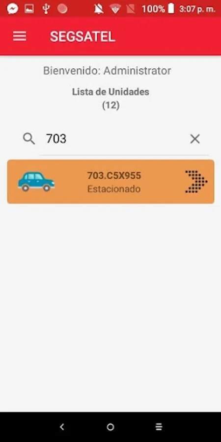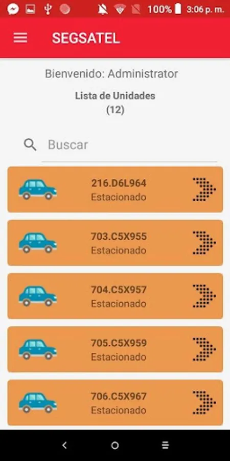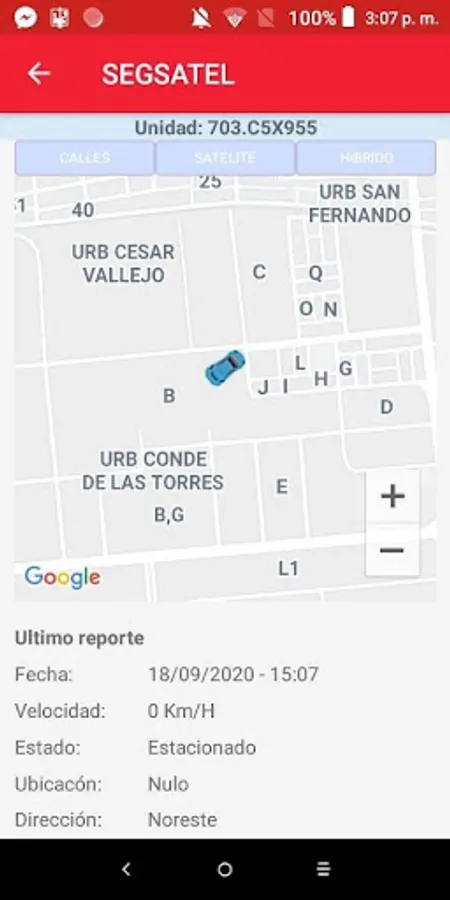 Location of vehicle units that make use of the GPS provided by the SEGSATEL company.