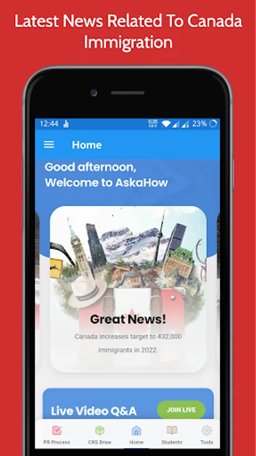 AskaHow Canada is the most in-depth reference and community platform on immigrating to Canada, particularly through the Express Entry PR (Permanent Residence) and Study Visa. The app contains detailed information ranging from choosing Canada as a destination for immigration to creating a profile, tips for improving Comprehensive Ranking System (CRS) scores, obtaining various visas, and information about landing as an immigrant (or student or work permit holder) and steps to successfully settling down.