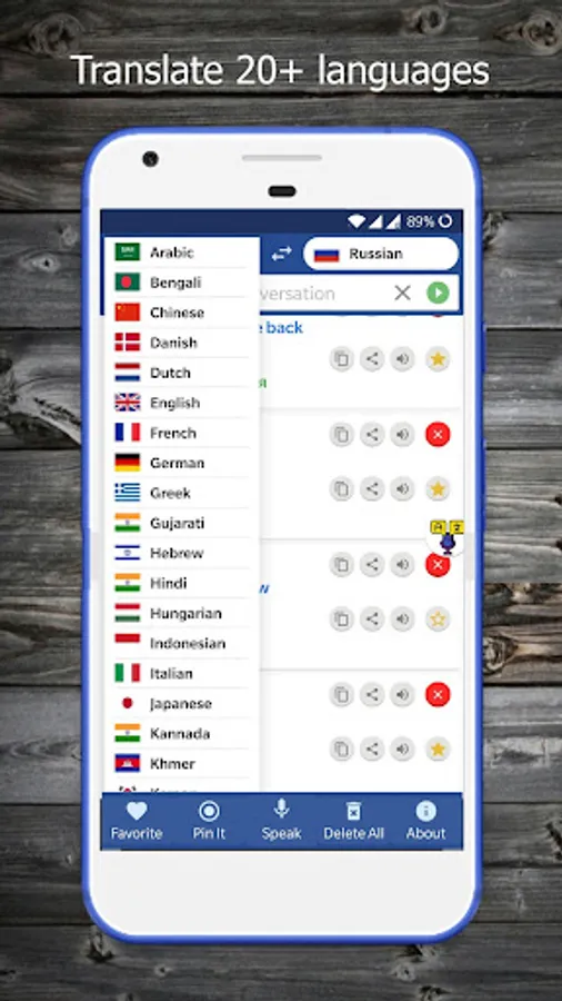* Translate between over 30 languages by typing, speaking, pronouncing.