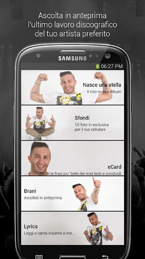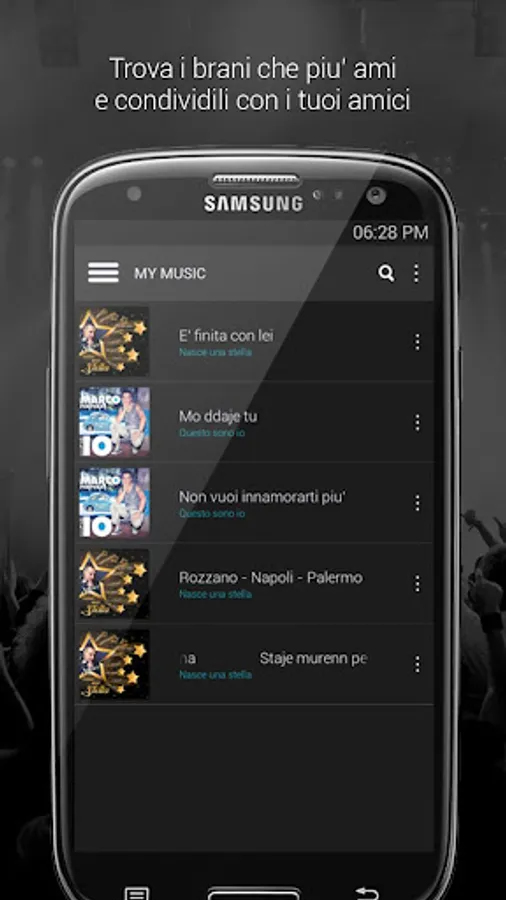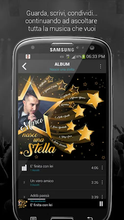 You can CHAT with all the fans and the artist with the artist, you can interact by voting each song or watch the rankings of the top rated songs and listened to. You can follow the artist in the TOUR, to be constantly updated on all the artist and EVENTS NEWS .... everything just from your smartphone.