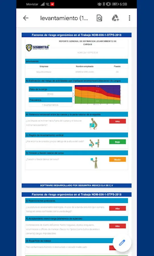 Interactive software for analysis and compliance with NOM-036-1-STPS-2018.