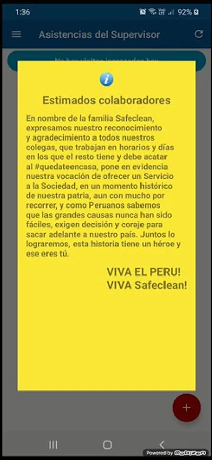 Application created by Safeclean S.A., allows real-time traceability of the supervision of our personnel assigned to the operation. This through virtual dialing in each of the headquarters, establishing supervision routes that will be monitored online from our Integral Management Center, thus allowing the sending of reports daily and / or at the request of the client.