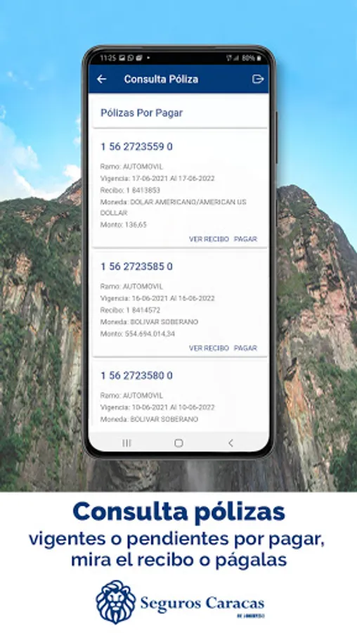 Our mobile application Insured by Seguros Caracas offers you your policy in one place.
