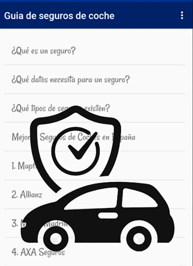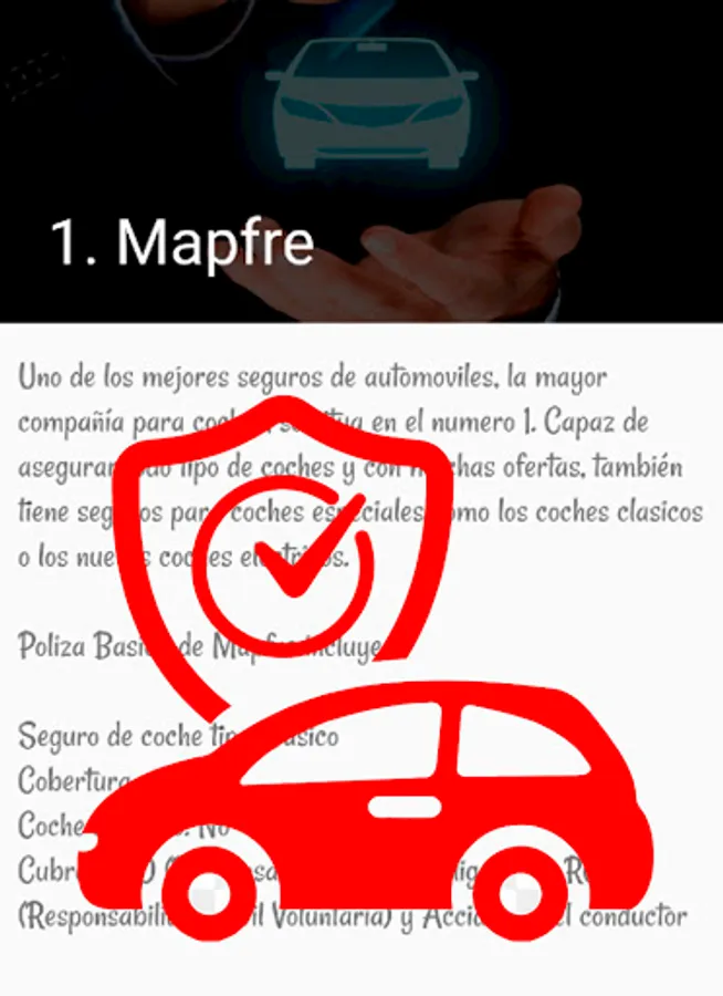 In this insurance application we explain everything you need to know about car insurance and we also show you which are the best insurances and their main characteristics, so that you can choose among the best and compare.