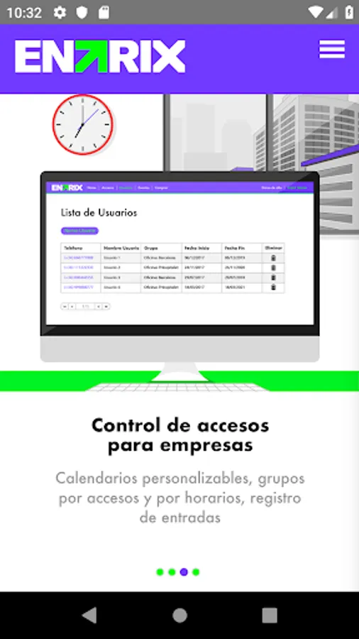 Thanks to ENTRIX, users no longer need to carry the controls and keys of each of the facilities they need to access (house, community garage, office, gym, hotel, yacht club, ...), now they can enter multiple facilities With a single virtual control, your own mobile.