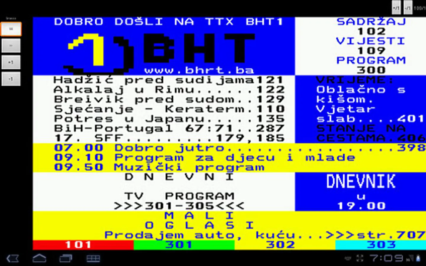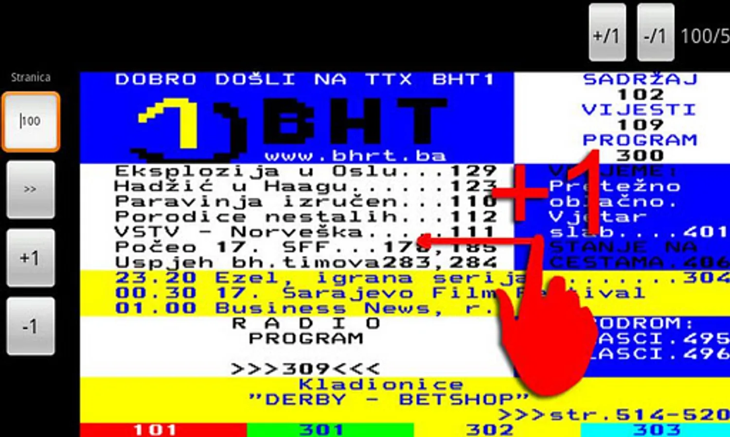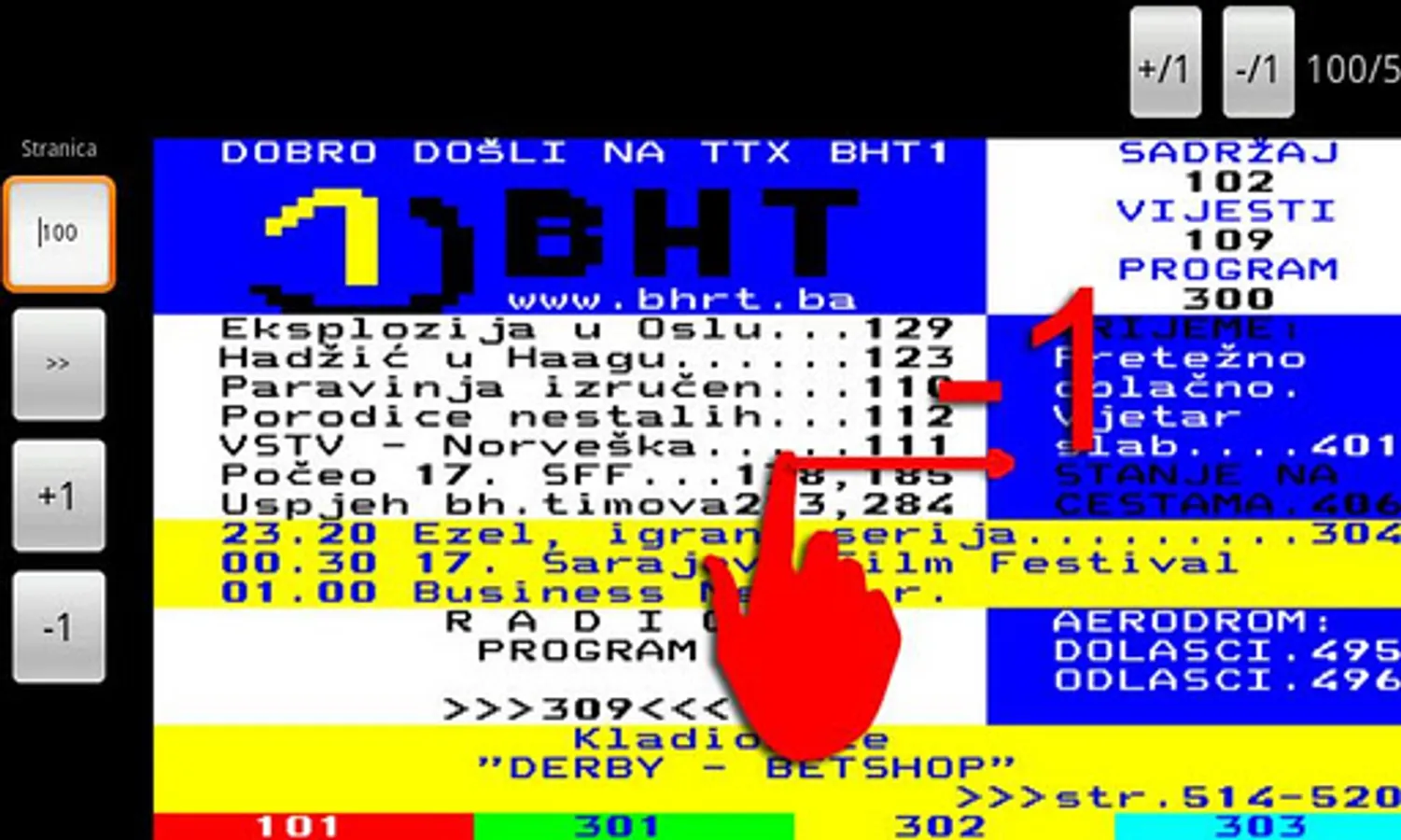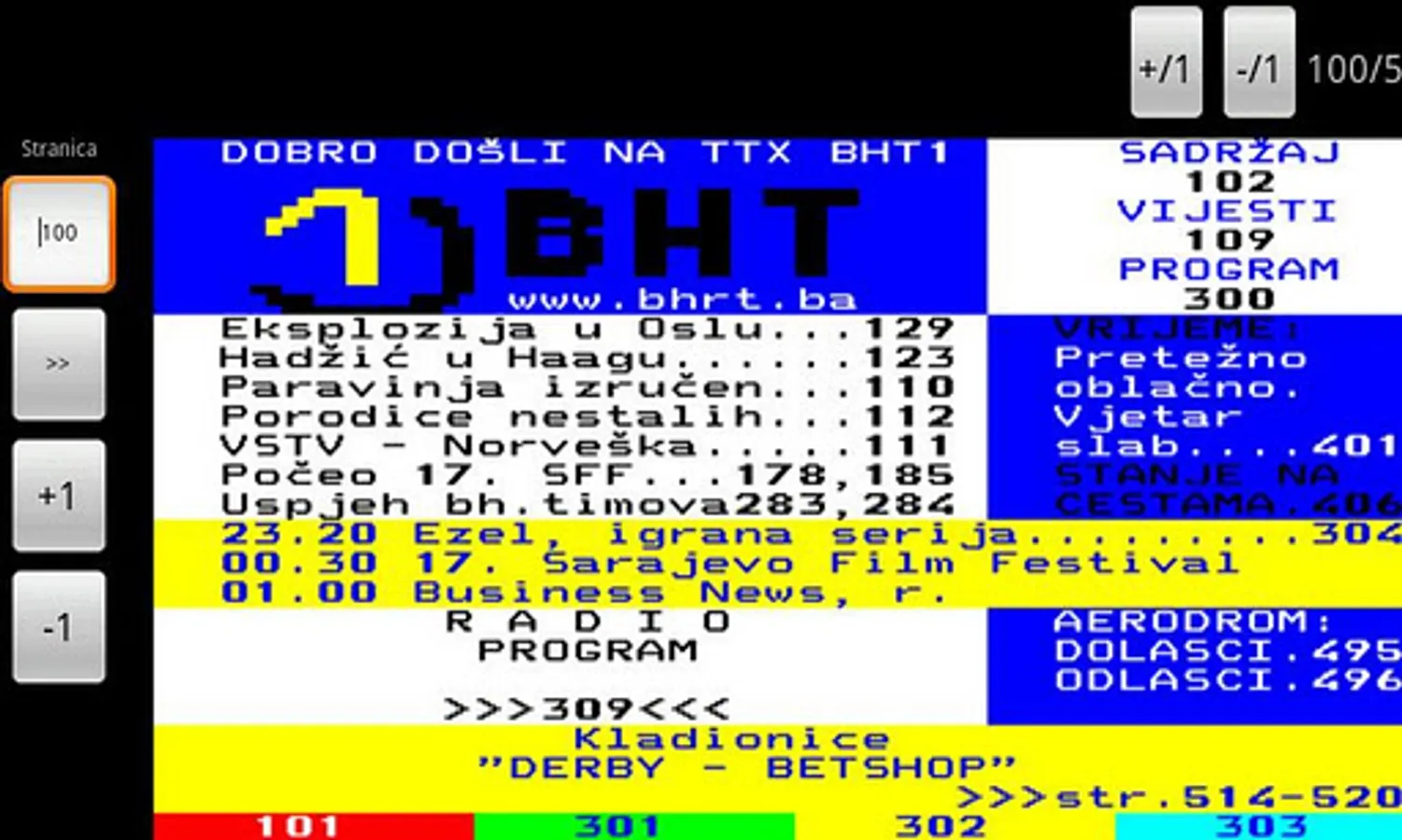 Sportske kladionice - Williams, BET-live, Lutrija BiH, Bet-shop, Derby, Millennium, Premier , sportski rezultati, pregled programa, vijesti, aktuelnosti, vrijeme, Loto, Bingo, stanje na putevima, i ostali sadržaji dostupni na jednostavan i poznat način. Teletekst na vašem mobitelu, dostupan uvijek i svugdje.