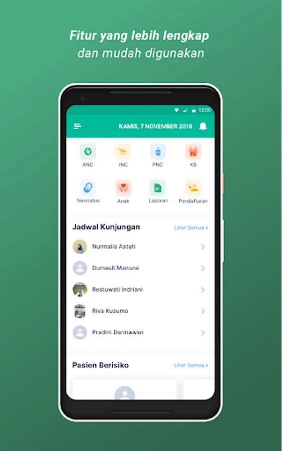 The Midwife Sehati medical application will guide the Midwife in conducting ANC, INC, and PNC examinations with easy and practical digital recording. This application is equipped with various features that make it easy for Midwives to provide quality maternal health services for their patients.