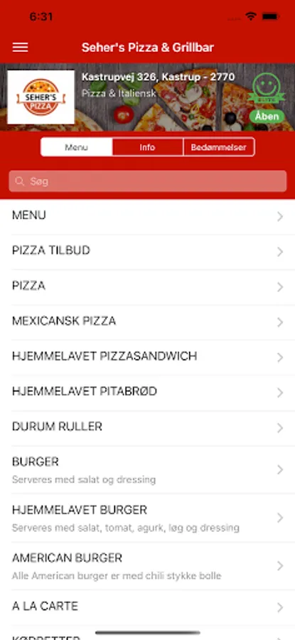 Med Seher's Pizza & Grillbar app på telefonen, har du madbestilling lige ved hånden.