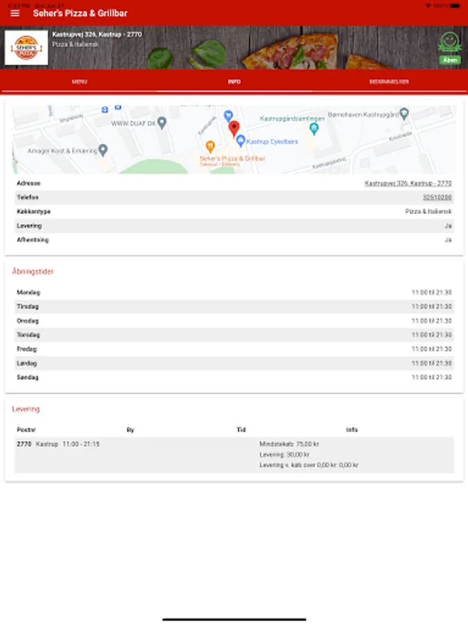 Bestil pizza, burger, pasta, m.m. med få tryk, nemt og hurtigt!