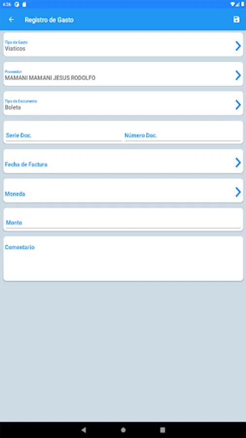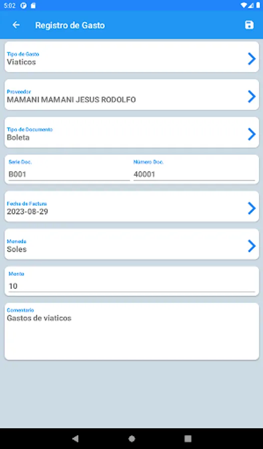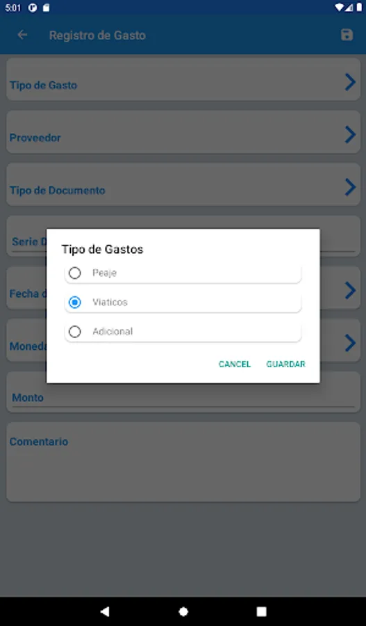App Integrated to SAP Business One for detailed recording of expenses made in the trips of the drivers of the barcino company