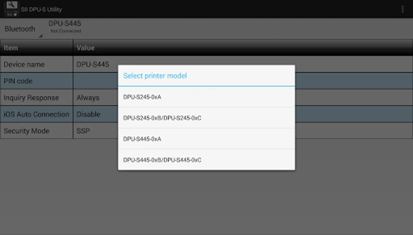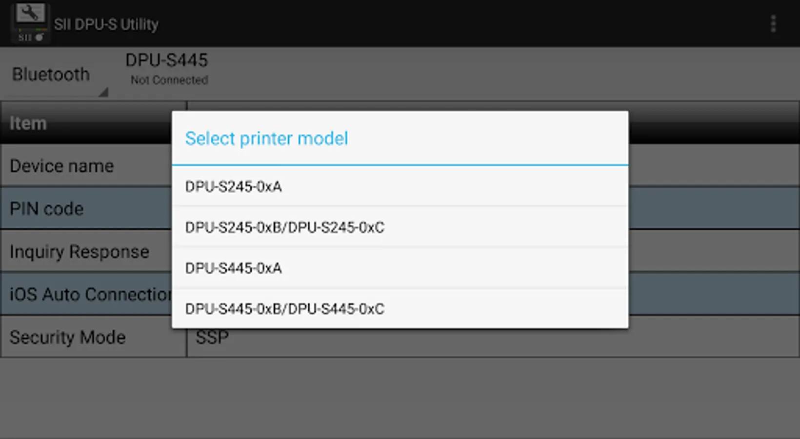 This app allows to preset function settings of Seiko Instruments Inc.'s mobile printer DPU-S series.