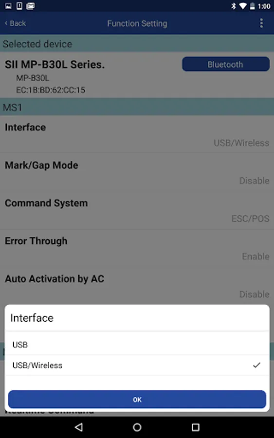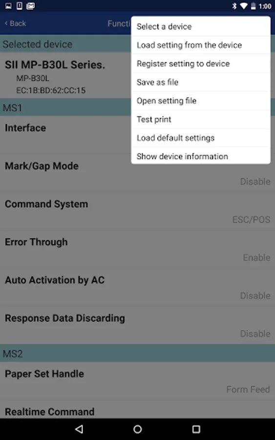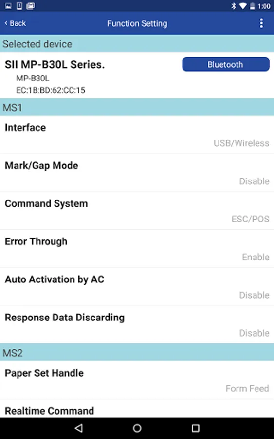 This app allows to preset function settings and communication settings of Seiko Instruments Inc.'s printer.