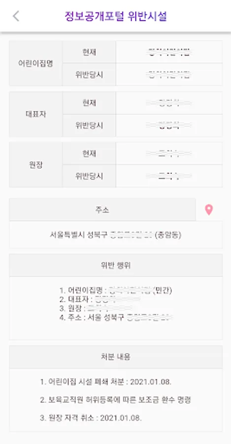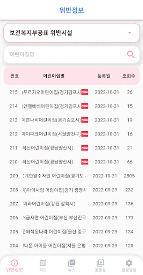 - I-sarang, Ministry of Health and Welfare Publication Violation Facility Information