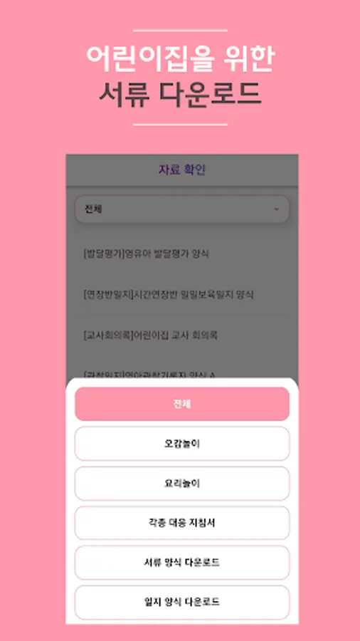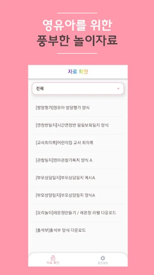 Monthly required documents, evaluation documents, play data, various diary samples, environment composition data, etc.