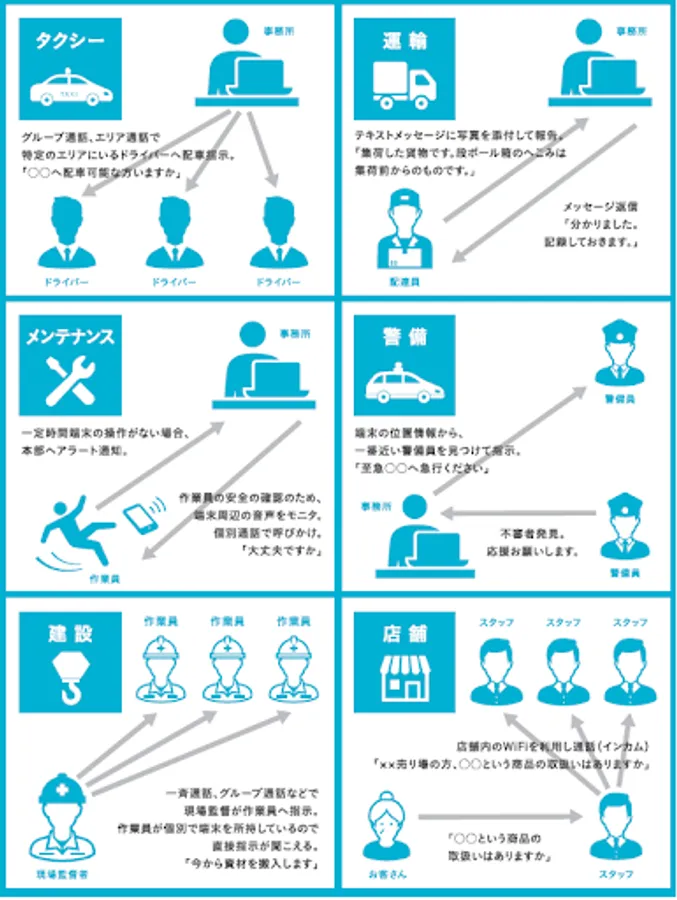 You can use functions such as individual calls like telephone and multiple calls of several thousands at the same time, message notification, and dynamic management.