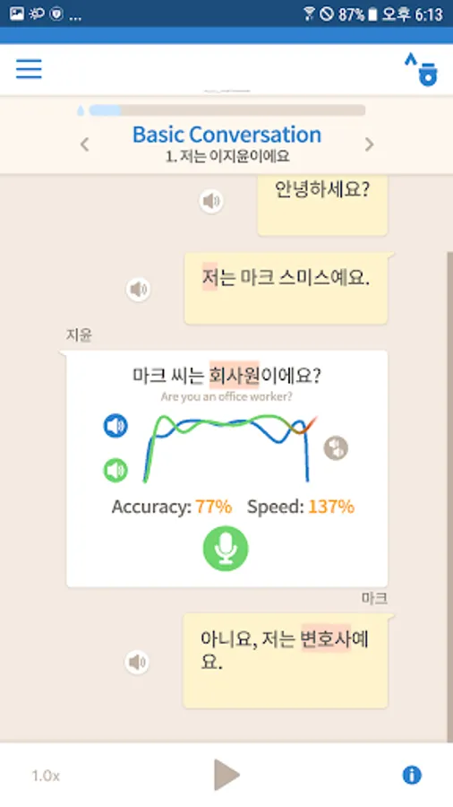 - For main sentences from each chapter, you can compare your pronunciation to the audio clips to learn new vocabulary.