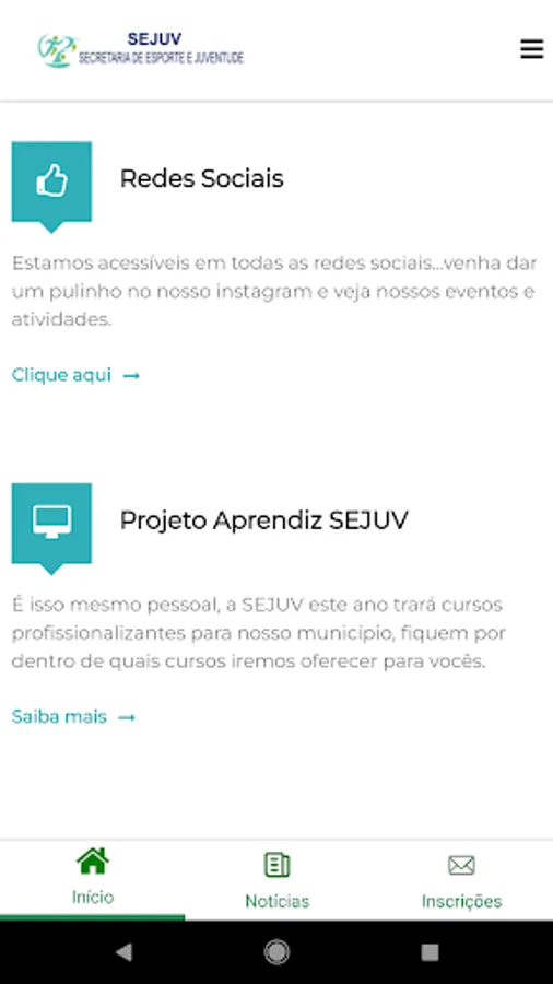 Official application of the Department of Sport and Youth of Eusébio - CE.