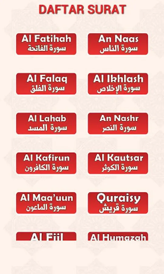 & bull; - Recite short verse verses Juzz Amma that is usually read when praying