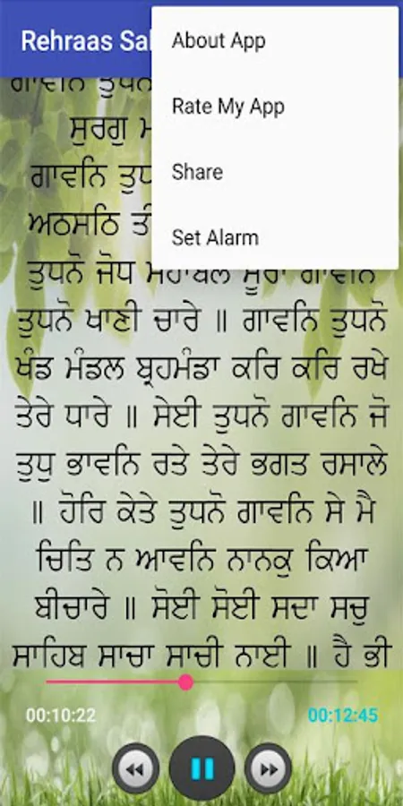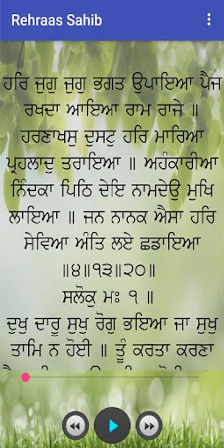 Rehras Sahib Audio helps you to read and listen to path daily along with play and pause feature and it also includes seeking bar effects which help you to move forward and backward in the path within the app.
